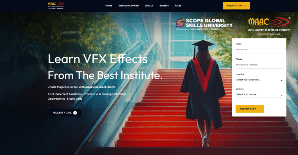 A custom Landing page for MAAC (AnimationBangalore) for generating leads for their VFX course and to store them in a Google Sheets and notifying the admins via email.