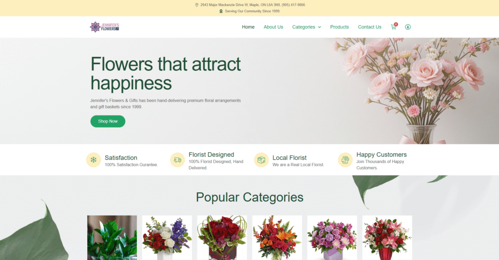 A Canada-based Flowering business with complete e-commerce functionality and a custom order functionality in WordPress, with multiple filters.