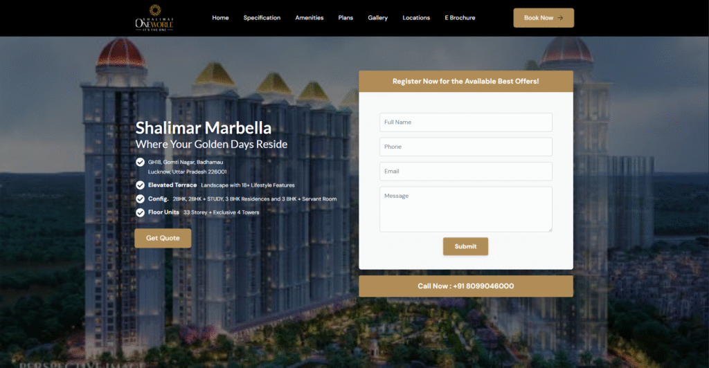 A complete custom Landing Page to display the information and to generate leads for the real estate company with a custom CRM Integration for storing leads.