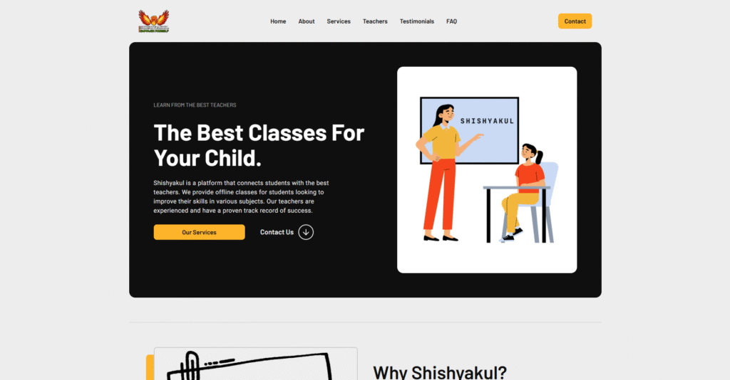 A tuition Classes website where they provide all the information about their classes, including their teachers, testimonials, and class overview. Also, a custom Class Management Portal has been built for their classes.